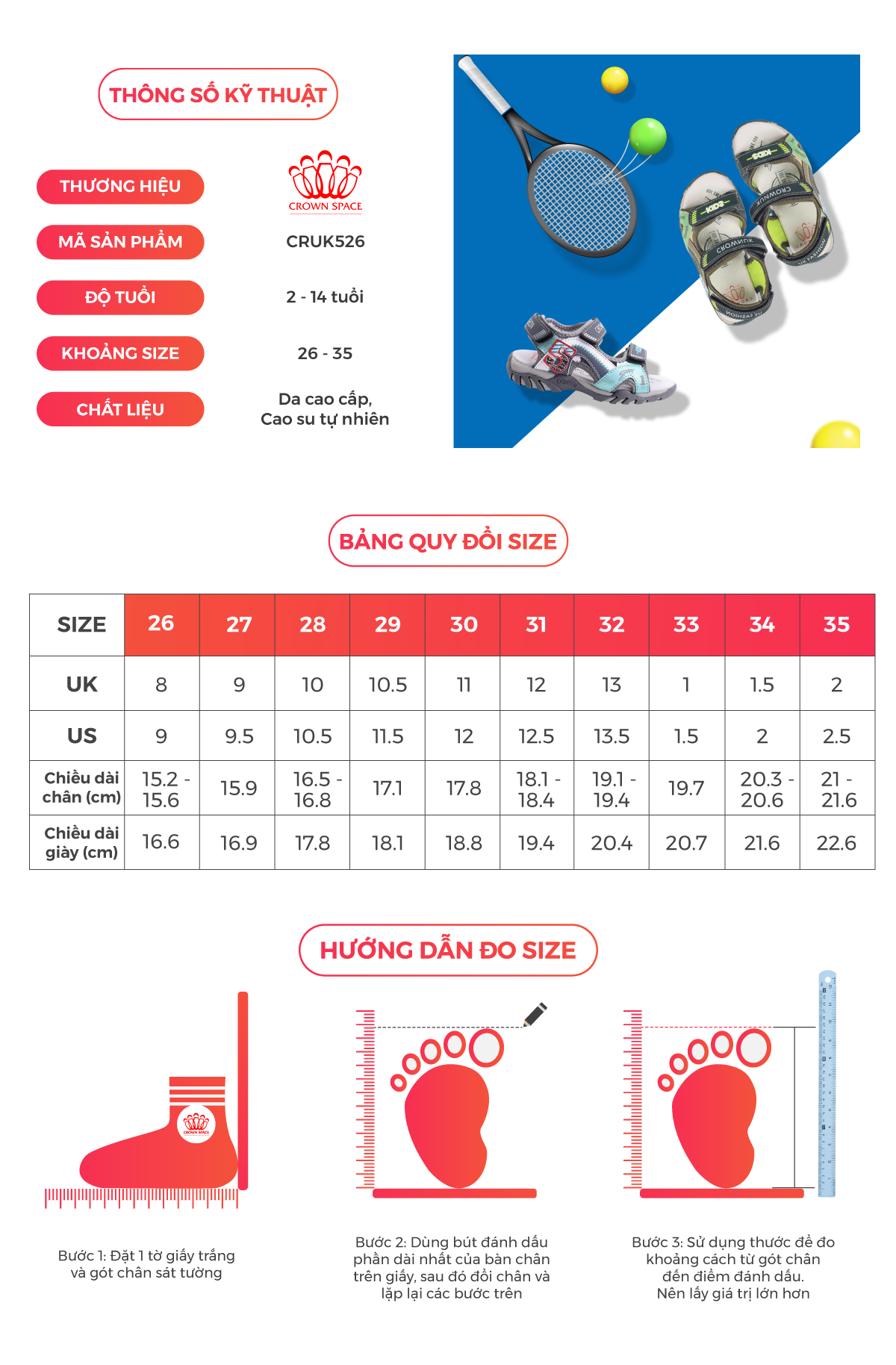 - [TIÊU CHUẨN]: Crown Space trở thành hệ thống cửa hàng “Multi-Brands Store” chuyên thời trang trẻ em tại nhiều quốc gia, đặc biệt tại khu vực Châu Á. Nhà phân phối tự tự hào là một trong số ít thương hiệu giày dép tại Việt Nam đặt yếu tố An toàn sức khỏe lên hàng đầu.
