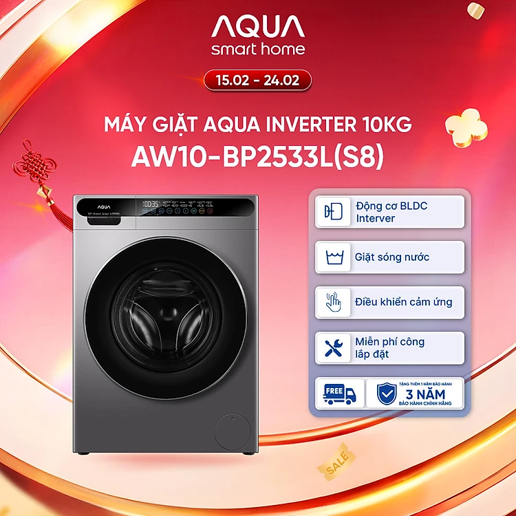 [SẮP RA MẮT 2026] Máy giặt cửa trước AQUA Inverter 10kg AW10-BP2533L(S8) - Bảo hành 2 năm - Freeship toàn quốc - Hàng chính hãng