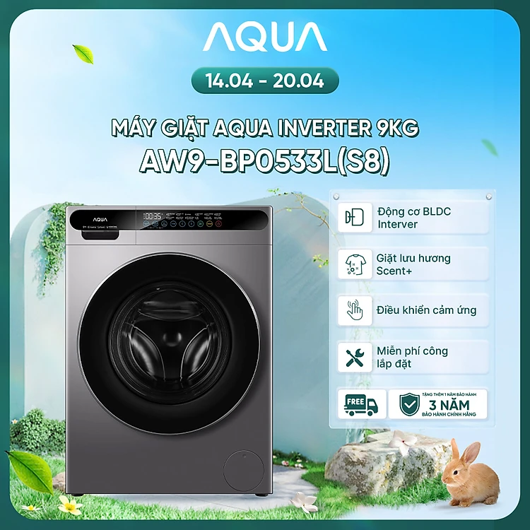 [SẮP RA MẮT 2026] Máy giặt cửa trước AQUA Inverter 9kg AW9-BP0533L(S8) - Bảo hành 2 năm - Freeship toàn quốc - Hàng chính hãng