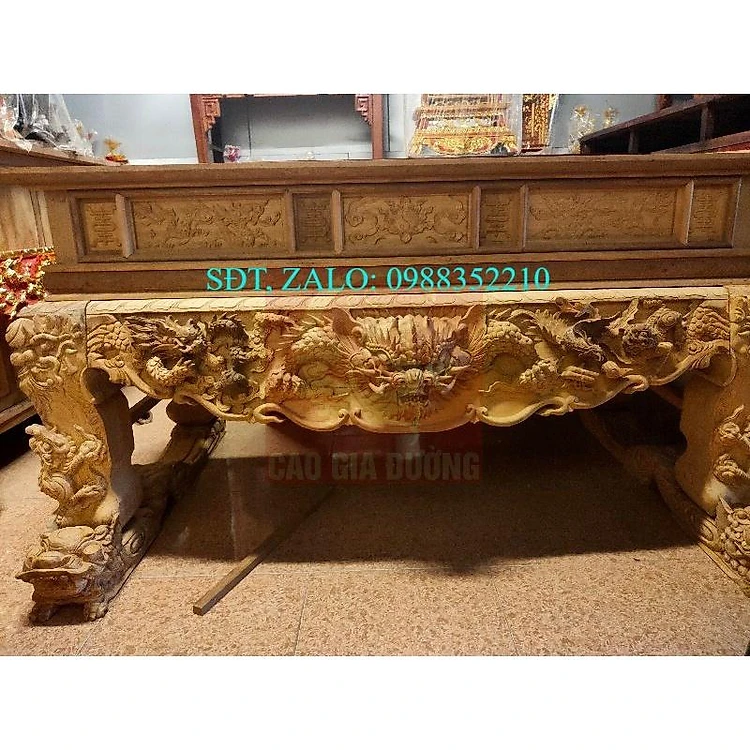 Sập thờ tứ linh kê nghê gỗ Gụ Lào 1m97x 107 x 117 chân 20