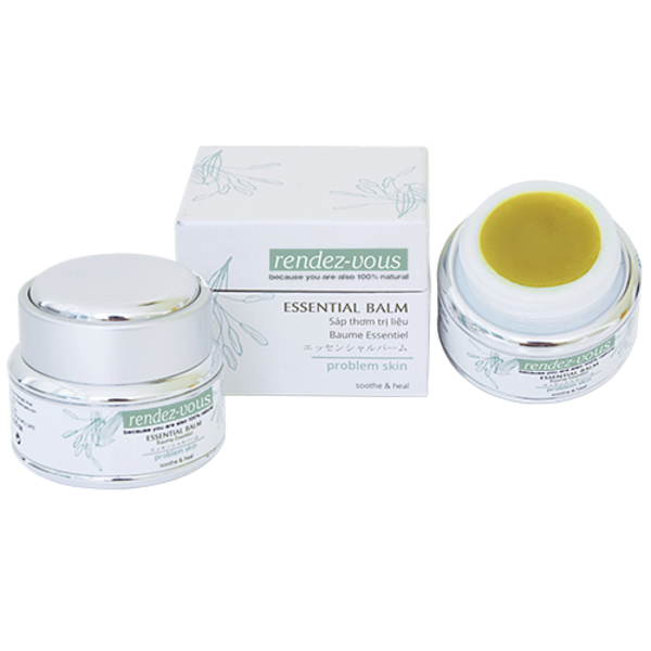 Sáp Thơm Trị Liệu 100% Thiên Nhiên Cho Da Mụn Tuổi Trưởng Thành rendez-vous Essential Balms Problem Skin đặc tính kháng viêm, làm se & tái tạo. Giúp làm dịu & chữa trị các vấn đề về da & tình trạng mụn nhẹ. Giúp ngăn ngừa sẹo mụn; thanh tẩy da dầu; làm dịu da khô, da bị kích ứng, ngứa & mẩn đỏ. Thúc đẩy hình thành mô mới, giúp làm lành nhanh, đem lại làn da khỏe mạnh.
