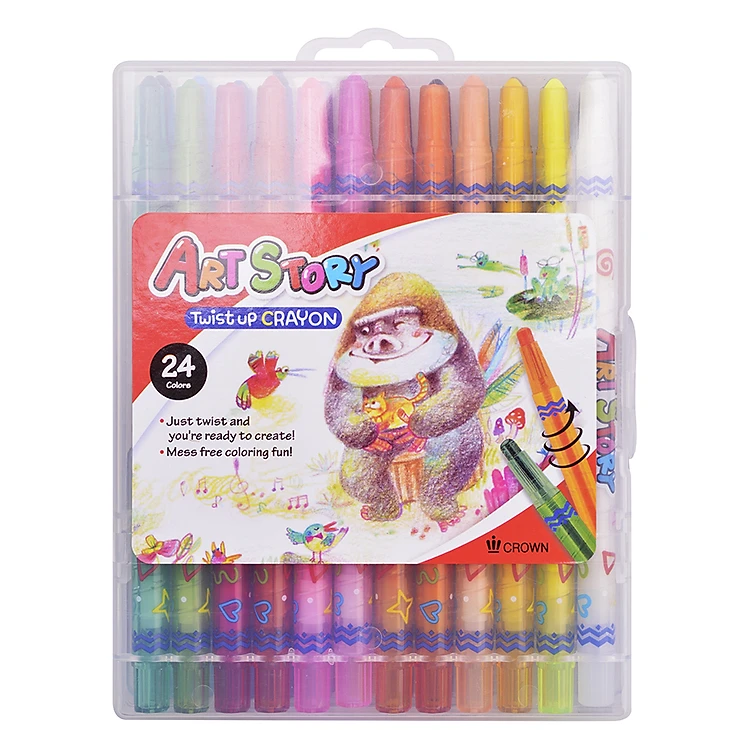 • Hộp sáp trọn bộ 24 cây đủ các sắc màu với chất sáp mềm cho lớp màu ra đều và mịn, bám dính giấy tốt và không sợ lem màu.