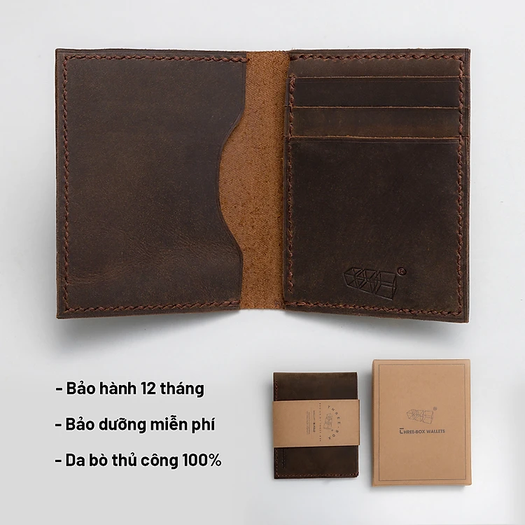 Ví da bò sáp Mini Card Three-Box nâu nhập khẩu handmade