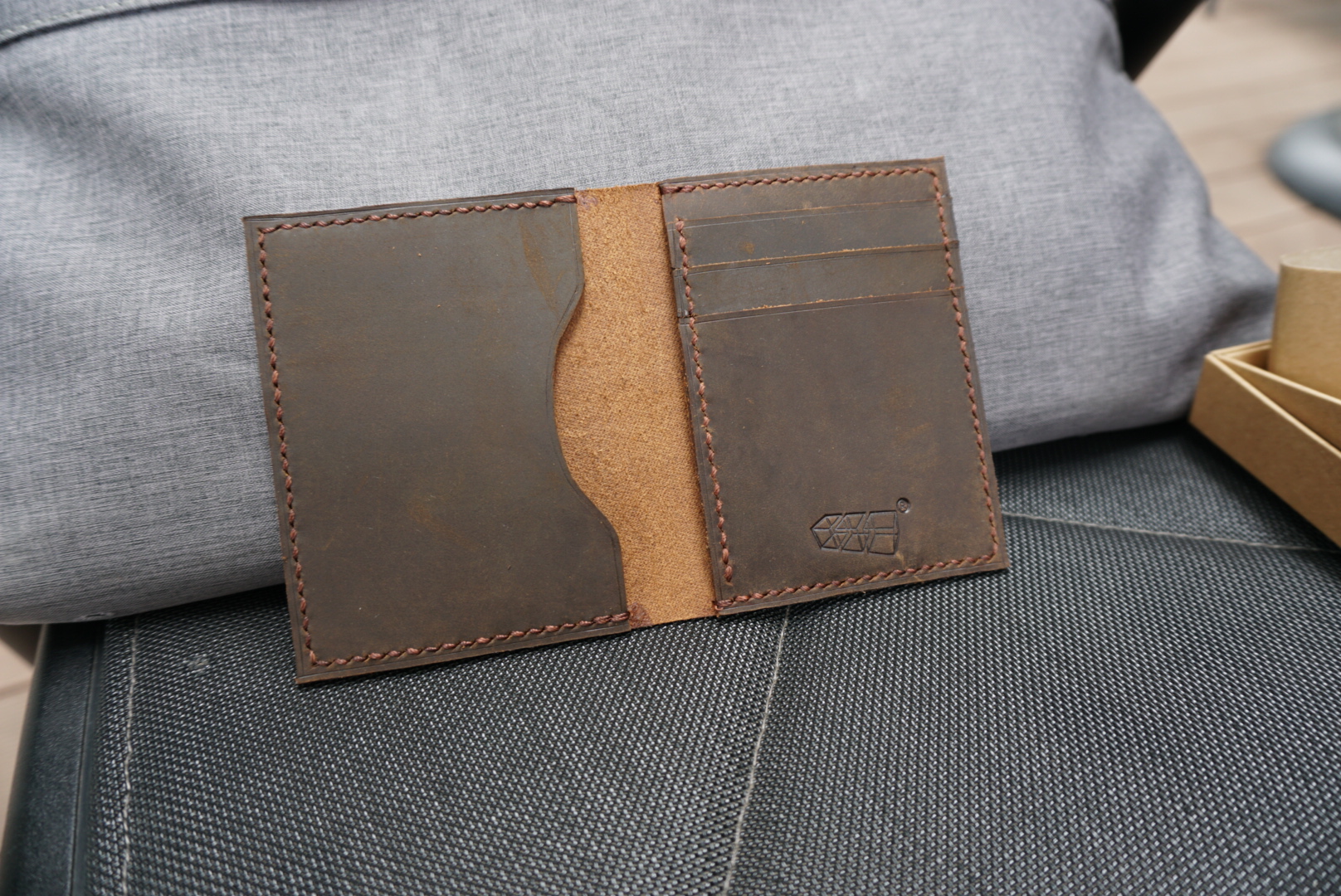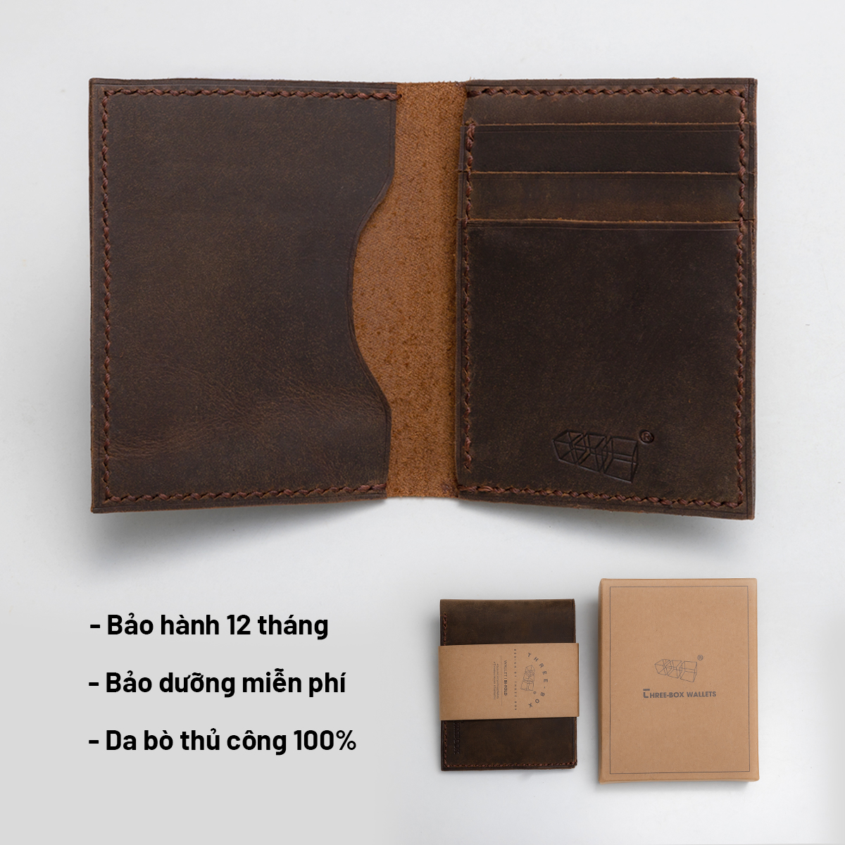 Ví Mini Card Three-Box da bò sáp nâu nhập khẩu handmade | TBCARD-LEGE-SAPWAX