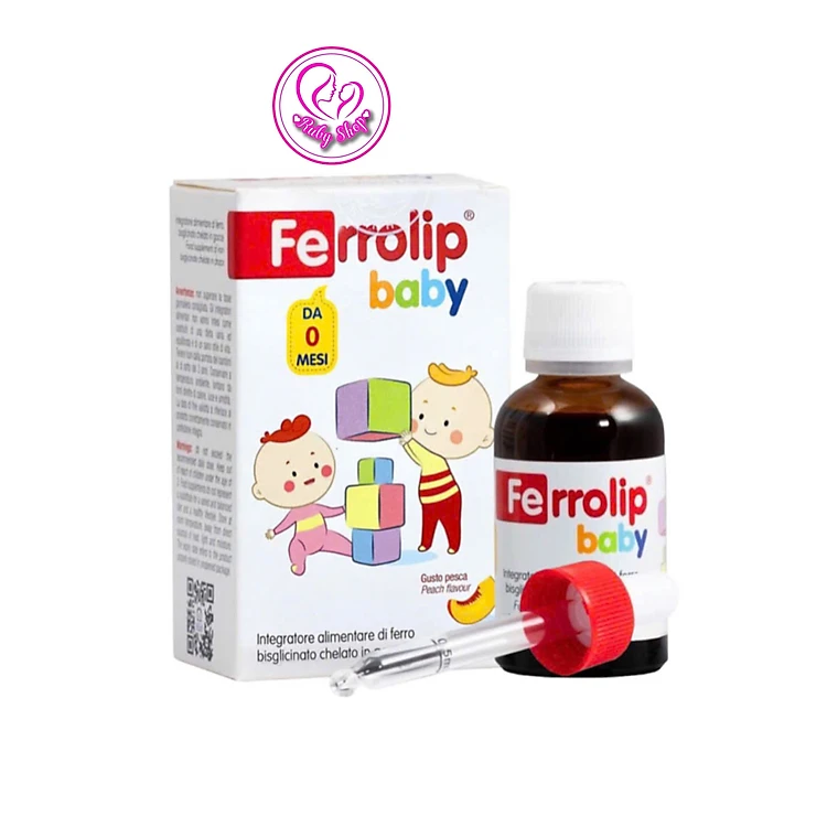 Sắt Ferrolip baby chai 30ml vị đào nhập khẩu Ý hỗ trợ bé phòng thiếu máu