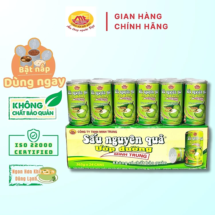 Sấu Nguyên Quả Ướp Đường Minh Trung 365g- Thùng 24 Lon Nước Sấu 24