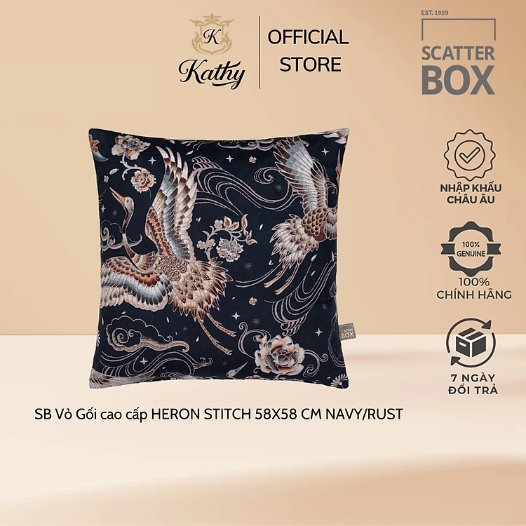 SCATTER BOX Vỏ Gối Cao Cấp nhập khẩu Ireland Anh Quốc HERON STITCH màu NAVY/RUST kích thước 58X58 CM phong cách cổ điển