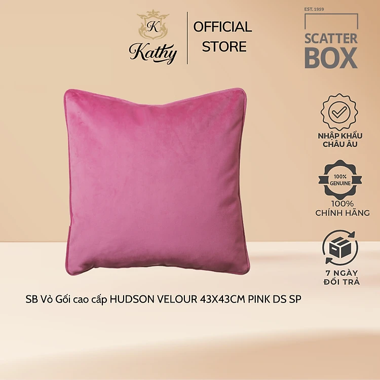 SCATTER BOX Vỏ Gối Cao Cấp nhập khẩu Ireland Anh Quốc HUDSON VELOUR màu PINK kích thước 43X43CM phong cách hiện đại
