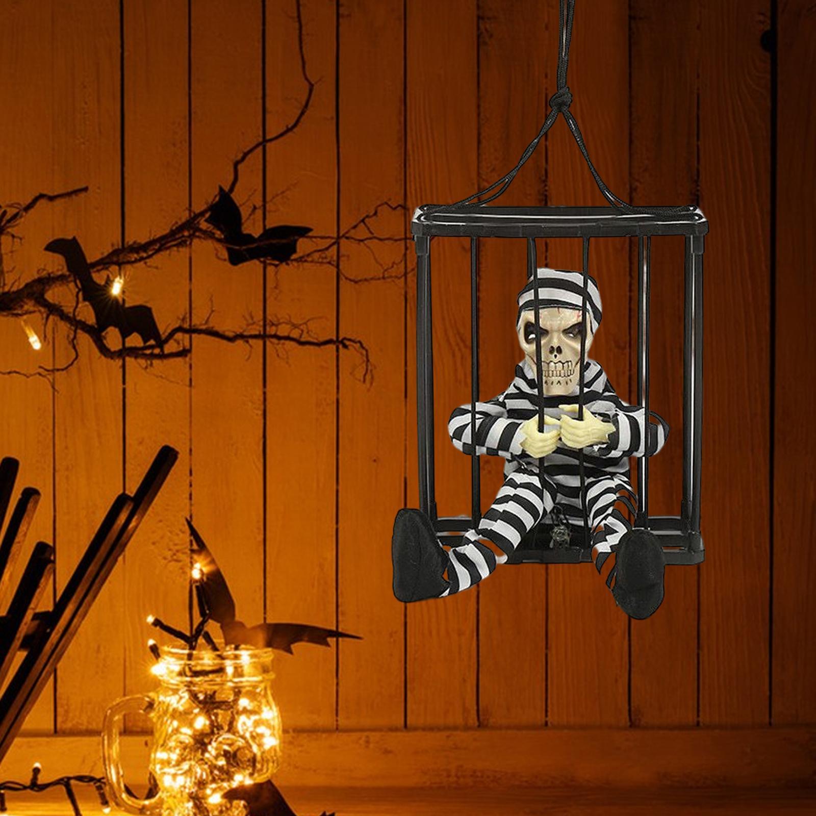 Scary Talking Prisoner Halloween Party Decor: Great for Halloween indoor and outdoor decorations. You can put it in entryways, in haunted houses, also suitable Bar, ktv, garden, etc.