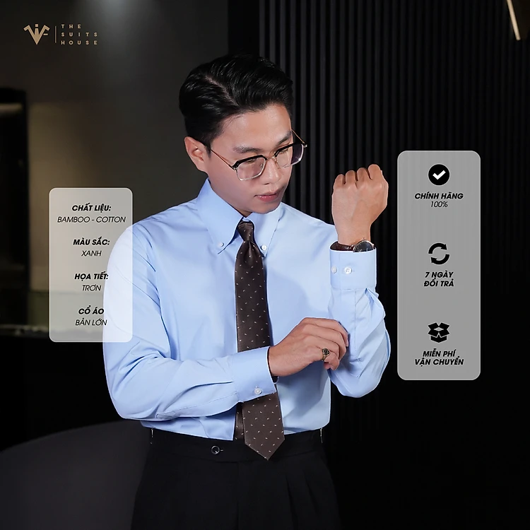 [SEASON 2025] Sơ mi XANH BABY BLUE, CỔ BUTTON DOWN, chất liệu Bamboo + Cotton, Regular-fit tôn dáng, mặc công sở, đi tiệc lịch lãm