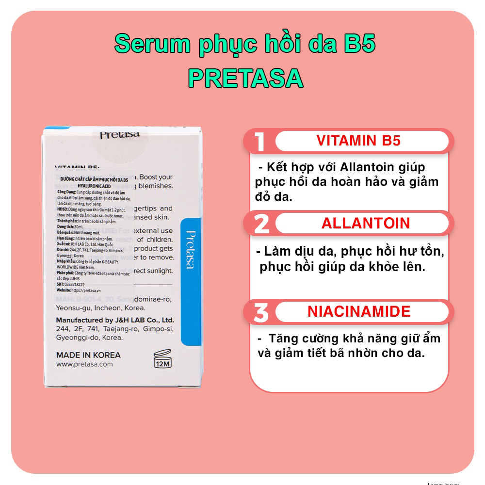 1.Thành phần Serum Cấp ẩm phục hồi B5 PRETASA :