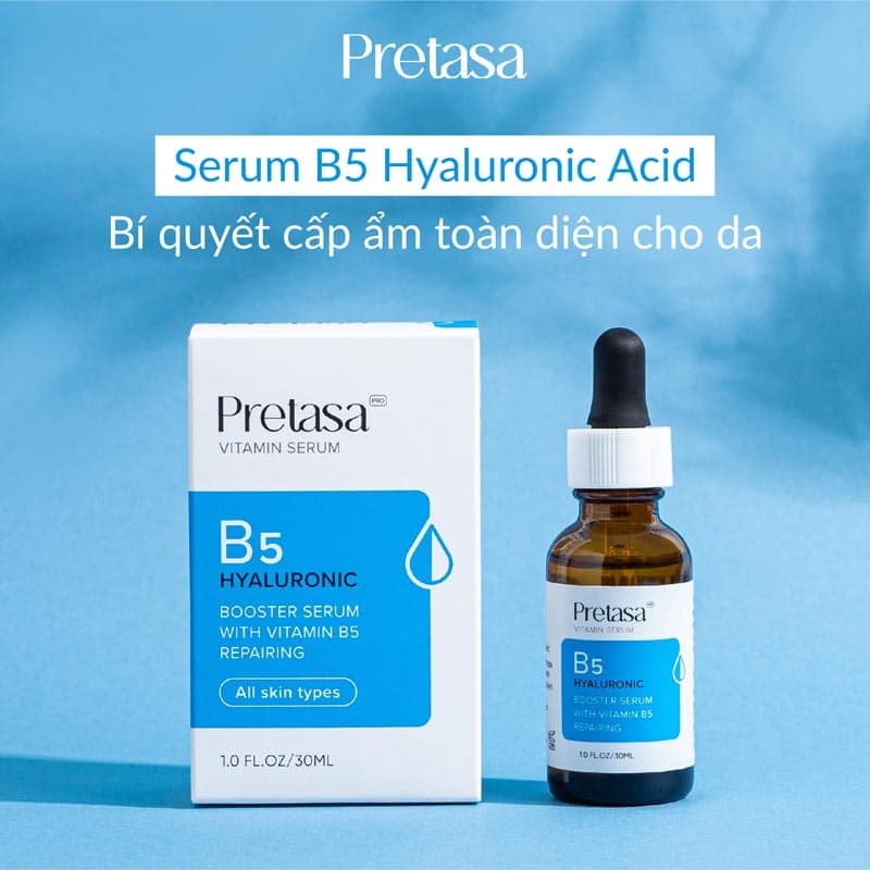 Serum Cấp ẩm phục hồi B5 PRETASA giúp cung cấp dưỡng chất và độ ẩm cho da , giúp làn da sáng và cải thiện độ đàn hồi cho da, giúp mang lại làn da mịn màng, tươi sáng, khỏe đẹp.