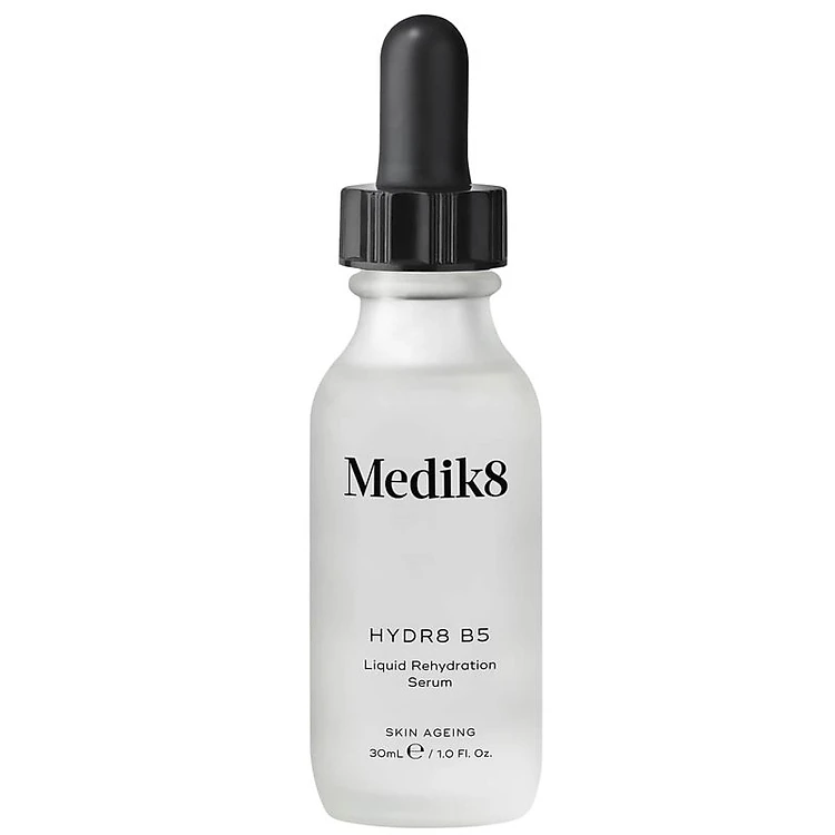 Medik8 Hydr8 B5 Hydration là serum dưỡng ẩm, phục hồi và tái tạo dành cho mọi loại da, đặc biệt là da nhạy cảm, da kích ứng do sử dụng kem trộn, phi kim, peel da, Với công thức đơn giản chứa Hyaluronic Acid và B5, đây là sản phẩm có thể thay thế kem dưỡng ẩm vào mùa hè dành cho những nàng da dầu do kết cấu mỏng nhẹ, thẩm thấu nhanh và ráo mịn trên da.