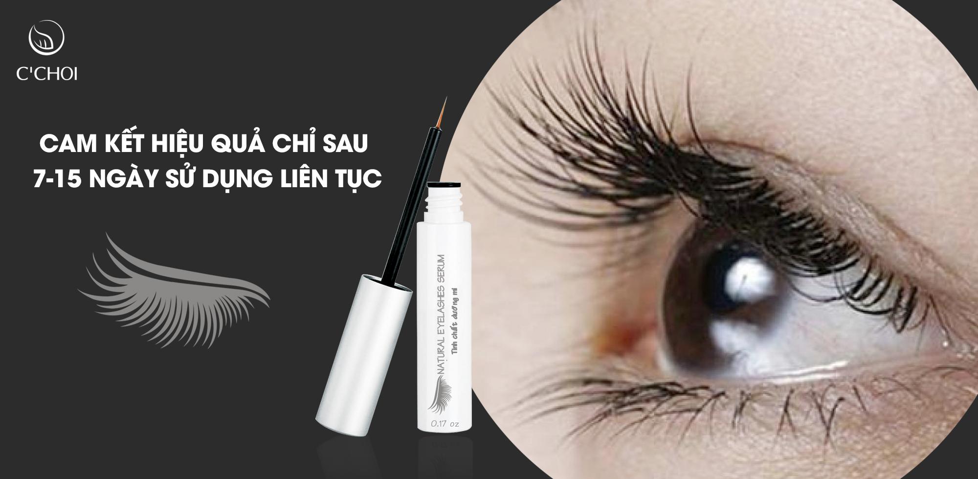 Đôi mắt là nơi cần được chăm sóc kỹ càng bậc nhất, nhưng lại ít nhận được sự quan tâm đủ của chị em phụ nữ. Với tiêu chí hàng đầu là AN TOÀN - HIỆU QUẢ, C'CHOI đã cho ra mắt Natural Eyelashes Serum - Serum Dưỡng Dày & Dài Mivới thành phần 100% tự nhiên KHÔNG CHẤT BẢO QUẢN - KHÔNG HÓA CHẤT PHỤ GIA, là sản phẩm chăm sóc mi mắt thân thiện với sức khỏe của người tiêu dùng. Ngoài ra, C'CHOI còn cam kết sự hiệu quả mà Natural Eyelashes Serum - Serum Dưỡng Dày & Dài Mi đem lại cho bạn chỉ sau từ 10 đến 20 ngày.