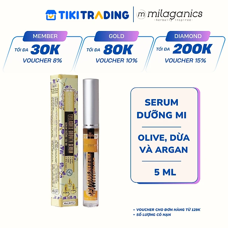 Serum dưỡng mi từ dầu nguyên chất (dừa, olive, argan) hiệu quả sau 3 tuần MILAGANICS 5ml (tuýp)