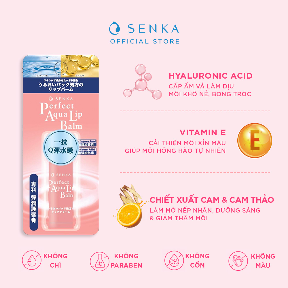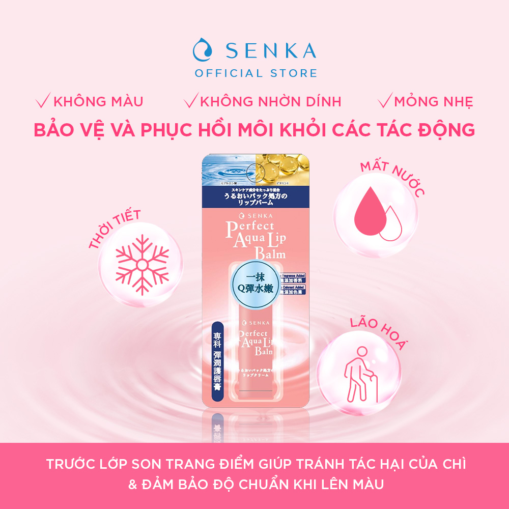 Serum dưỡng môi cấp ẩm SENKA PERFECT AQUA LIP BALM 4.5g là phụ kiện làm đẹp không thể thiếu trong túi xách của phái đẹp. Các dưỡng chất có trong son dưỡng Senka thấm và tan nhẹ vào môi, hoàn toàn không khiến môi bóng hay bết dính mà mềm mại, hơi căng nhẹ, hơi bóng nhẹ như nét tự nhiên của đôi môi căng đầy. Nhờ vậy trông môi đầy đặn và có sức sống hơn.