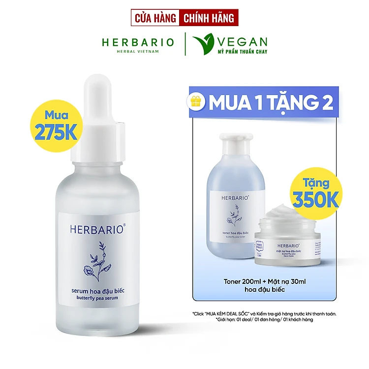 [Hàng tặng không bán] Toner hoa đậu biếc Herbario 200ml thuần chay, cấp ẩm, ngăn ngừa lão hóa