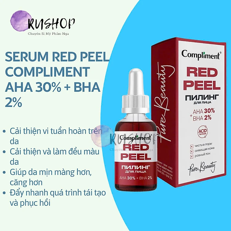 Serum Red Peel Compliment AHA 30% + BHA 2% cải thiện làn da, se khít chân lông 27ml