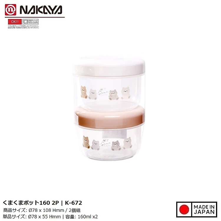 Set 02 hộp đựng thực phẩm Nakaya Pot Bear 160ml - Hàng nội địa Nhật Bản nhập khẩu chính hãng