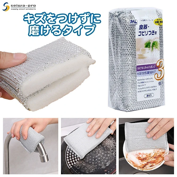 Set 03 miếng cọ rửa bọc lưới bằng nhôm Seiwa Pro - Hàng Nội Địa Nhật Bản