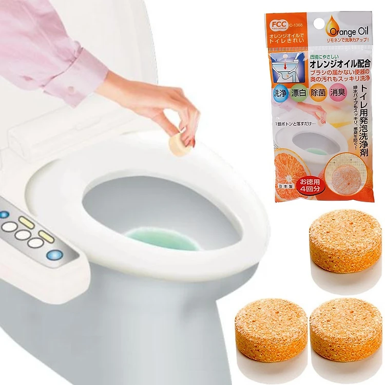 Set 03 viên tẩy rửa diệt khuẩn, khử mùi bồn cầu 10g - Hương cam - Made in Japan
