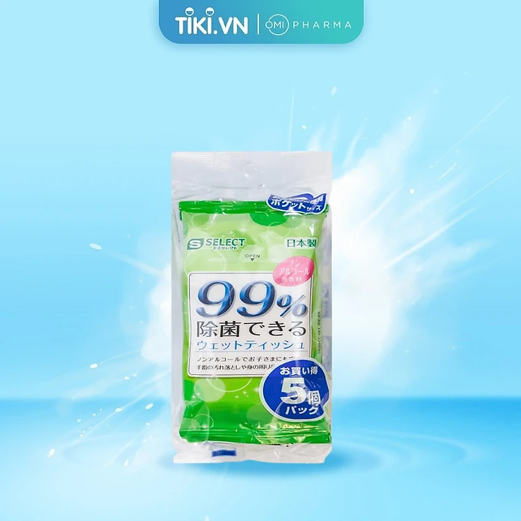 Set 05 Gói Khăn Ướt Khử Trùng 99% S Select Không Chứa Cồn (Túi 5 gói x 10 miếng)