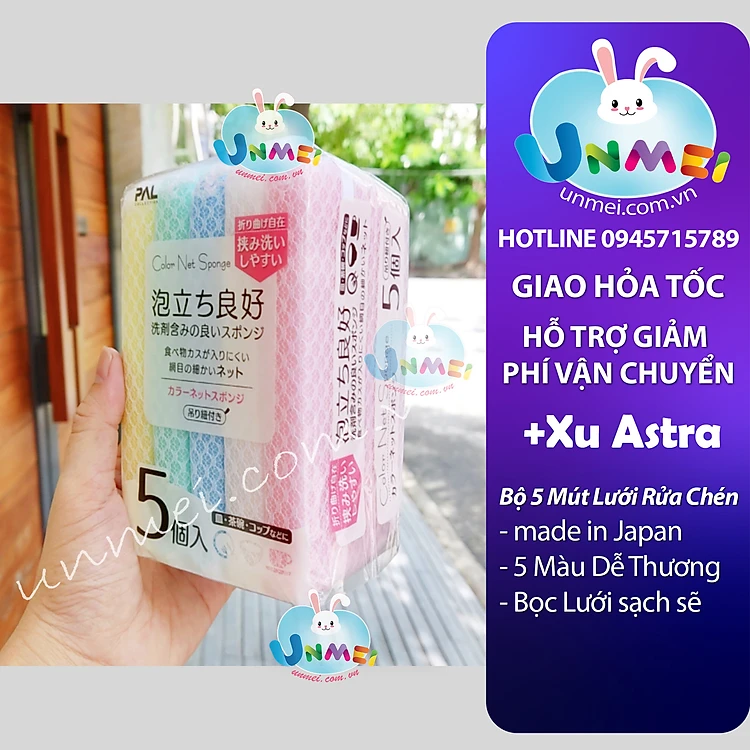Set 05 Miếng Mút Bọc Lưới Rửa Chén Bát Tạo Bọt - Nội địa Nhật Bản Mẹ và Bé Unmei