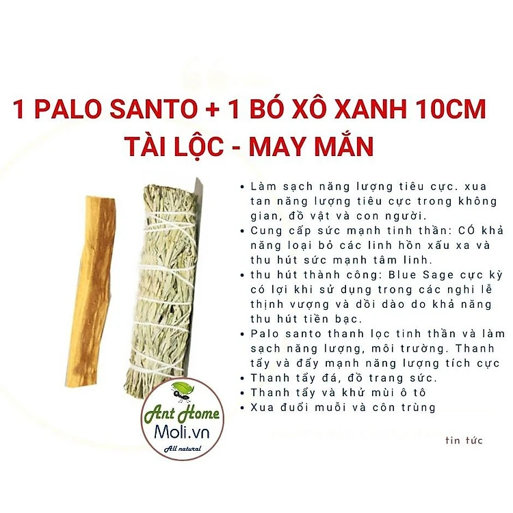 Sét 1 bó xô thơm xanh blue sage + 1 thanh gỗ trắc xanh palo santo 10cm May mắn - Tài lộc