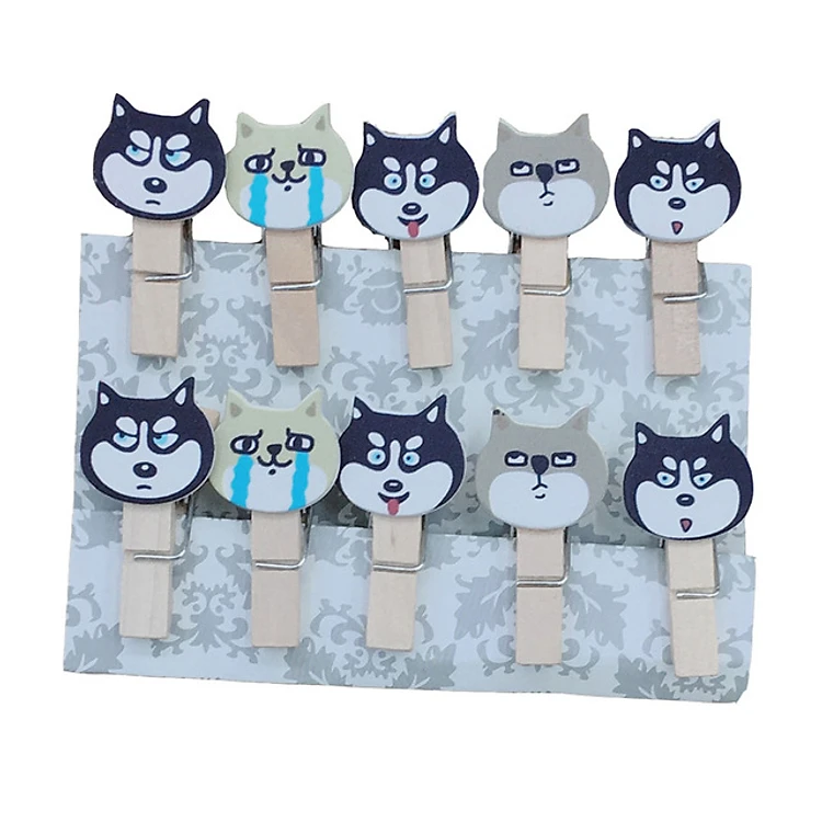 Set 10 Cái Kẹp Gỗ Sơn Design Pub hình Chó Husky (Tặng 1,5m dây cói)