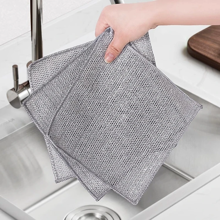 Set 10 Giẻ Lau Bếp Dây Kim Loại, Lau Máy Rửa Bát Vải Lau Lưới Đa Năng Chống Mài Mòn, Tấm Cọ Rửa Tiện Ích - Hàng CHinh Hãng MINIIN