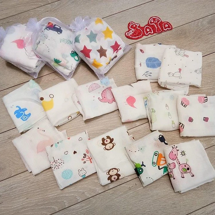 Khăn sữa là 1 sản phẩm ko thể thiếu cho quá trình chăm bé. Khi mua khăn sữa mẹ nên lưu ý mua tối tiểu 2 loại khăn khác nhau: - 1 khăn chuyên dụng lau mặt - 1 khăn lau người tránh tình trạng khăn lau người, mông, bẹn... bé lại mang chung lau mặt sẽ dễ gây ra tình trạng đau mắt ở trẻ. đặc biệt khăn sữa chuyên dụng lau mặt cũng cần đc giặt riêng. Khăn sữa túi quà với KT: 28x28 khá rộng giúp mẹ có thể dùng làm khăn mặt hay khắn quấn cổ đều rất thích hợp, đc thiết kế với nhiều hoạ tiết dễ thương, đây là một trong các dòng khăn đc các mẹ mua nhiều nhất bởi ko thể cưỡng lại đc sự đáng yêu bởi họa tiết của khăn.