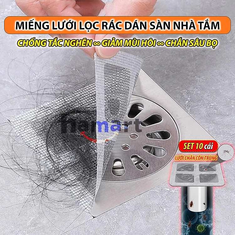 SET 10 Miếng Lưới Lọc Rác Nhà Tắm Chặn Côn Trùng Dán Nắp Cống Thoát Nước Sàn Bồn Rửa Bát Chống Tắc Nghẽn