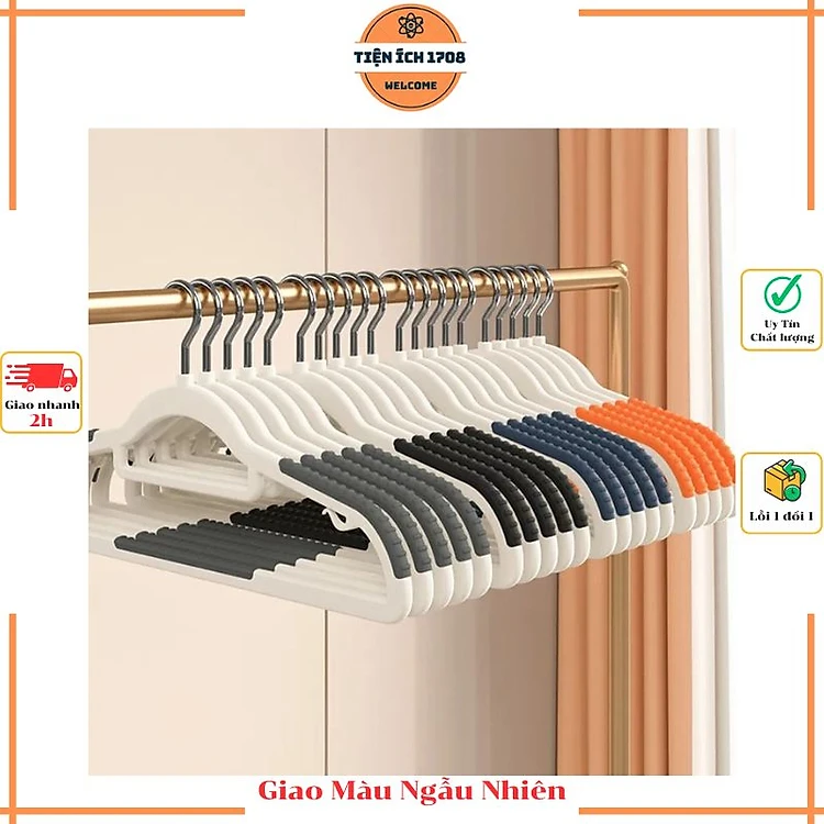 Set 10 móc treo quần áo chống trượt xoay 360 đa năng (Giao màu ngẫu nhiên)