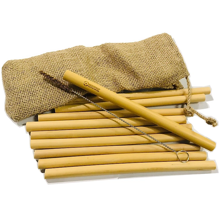 Set 10 ống hút tre Nhật Pháp + Tặng túi Canvas + Cọ rửa sơ dừa