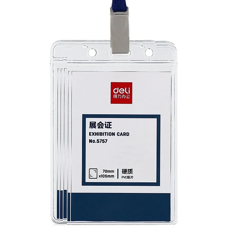 Set 10 thẻ đeo bảng tên cao cấp kèm dây xanh dương khổ ngang / dọc 70×105mm Deli 5756 / 5757