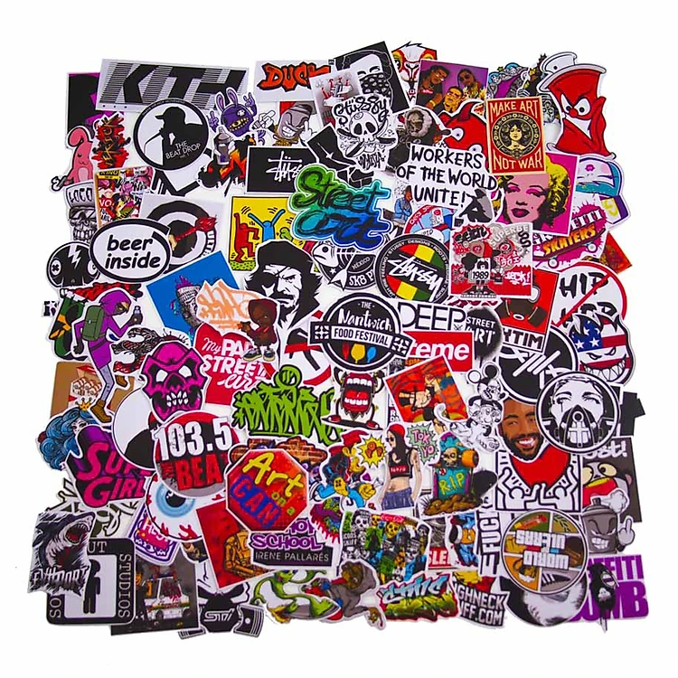 - Set 100 Sticker - Sticker còn gọi là decal, tem, hình dán dùng để trang trí lên tất cả bề mặt cứng: mũ bảo hiểm, laptop, xe máy, ô tô, vali, tường, cửa nhà, tủ quần áo.