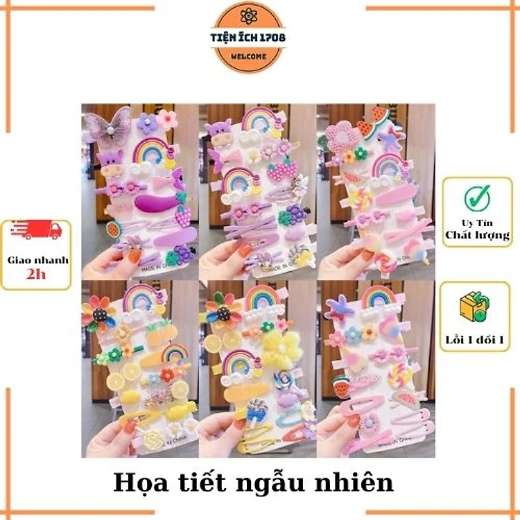 Set 14 Kẹp Tóc Nhiều Màu Sắc, Họa Tiết Đa Dạng Đáng Yêu Cho Bé