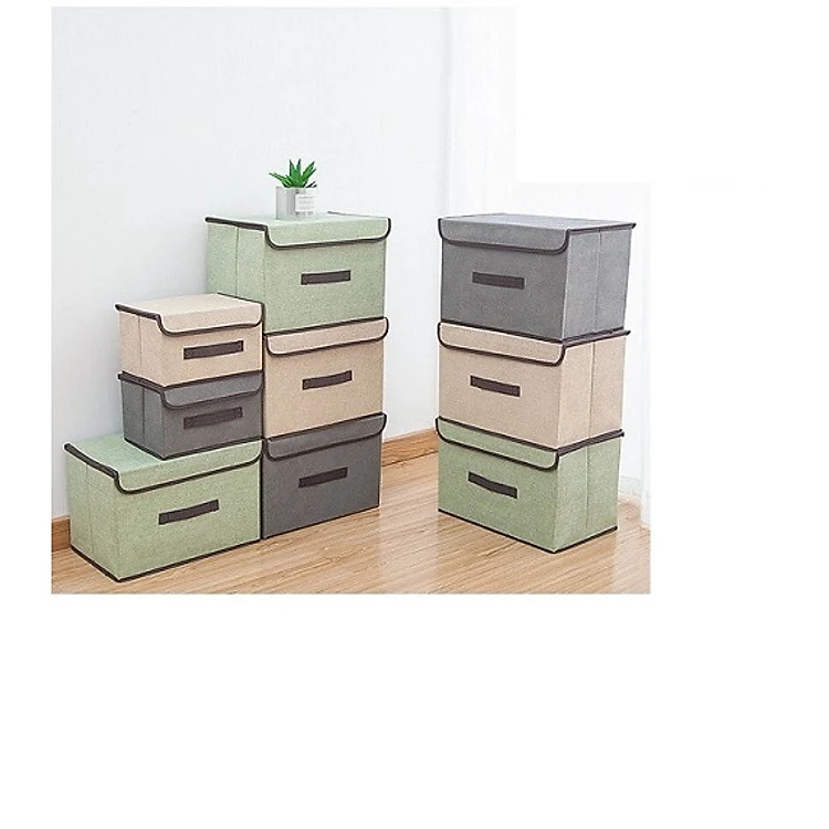 Set 2 bộ 4 hộp vải đựng quần áo, hộp đựng đồ , hộp vải đựng đa năng có nắp kèm quai xách tiện dụng, giao màu ngẫu nhiên