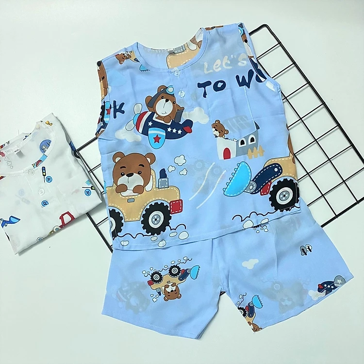 Combo 2 bộ đồ tole Bé Trai Loại 1 - Mẫu đùi Sát Nách cài 2 nút trước - Hàng Việt Nam chất lượng, chất vải mềm mịn, mát