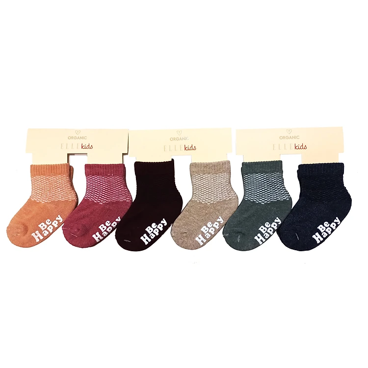 Set 2 đôi tất dệt xù ORGANIC dành cho trẻ 6-18 tháng in silicon chống trượt thương hiệu ELLE Kids EK2113 LOC2