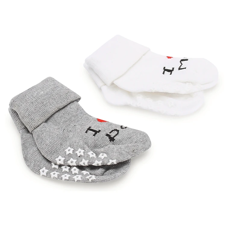 Sản phẩm gồm 2 đôi màu trắng và xám cho bé tiện lợi thay đổi mỗi ngày. Vớ được tạo điểm nhấn với hình trái tim nổi bật màu đỏ với dòng chữ I love Papa, I love Mum ý nghĩa.