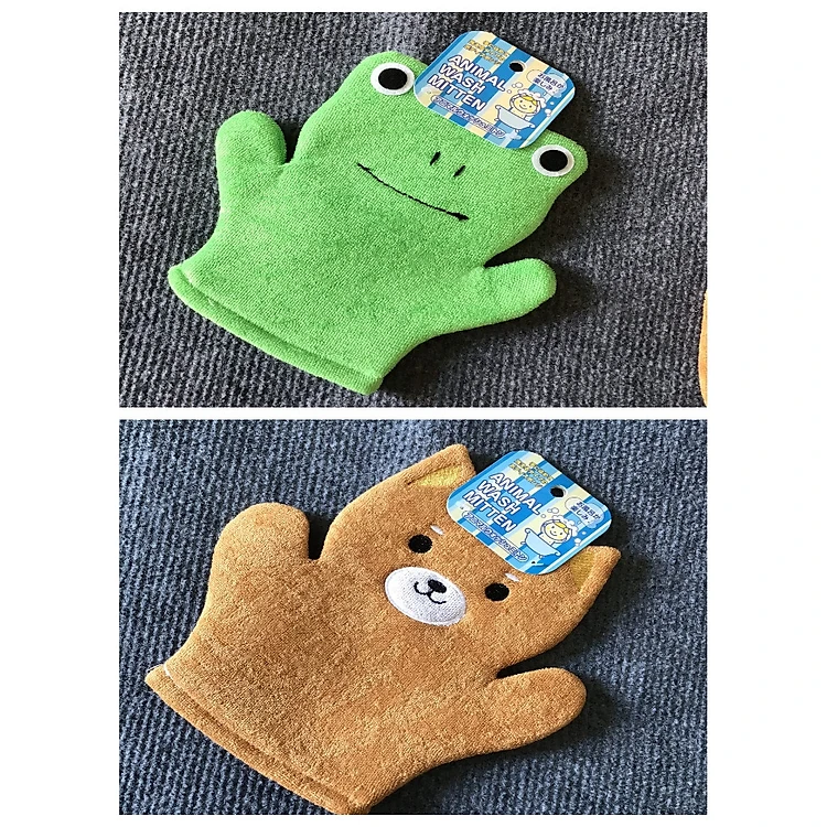 Set 2 găng tay tắm bé cao cấp hình Ếch và Gấu nhập khẩu từ Nhật Bản