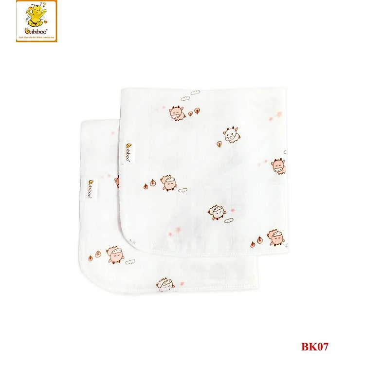 Set 2 Khăn sợi tre sơ sinh in hình 2 lớp BABIBOO - BK07