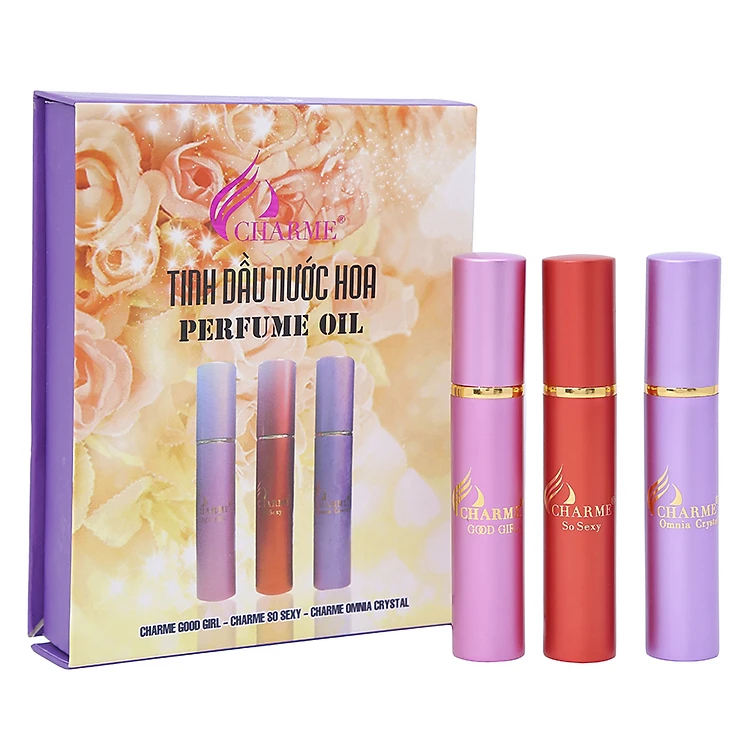 - Với set tinh dầu nước hoa này, các bạn sẽ nhận được 3 mùi hương đặc trưng của Charme đó là Charme Good Girl, Charme So Sexy và Charme Omnia Crystal: