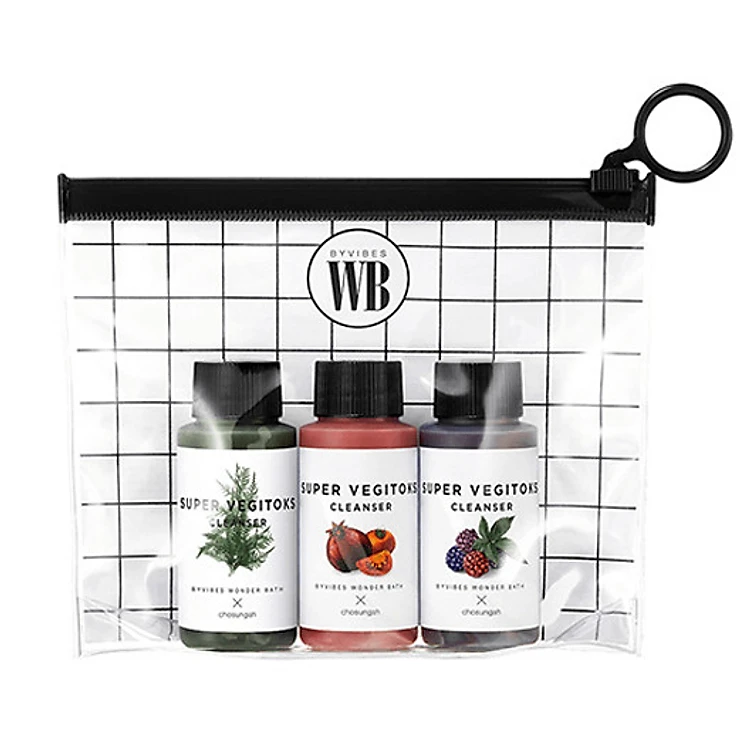 Set 3 chai sữa rửa mặt thải độc rau củ Bivybes Wonder Bath Super Vegitoks Cleanser Miniature Kit 30ml/chai
