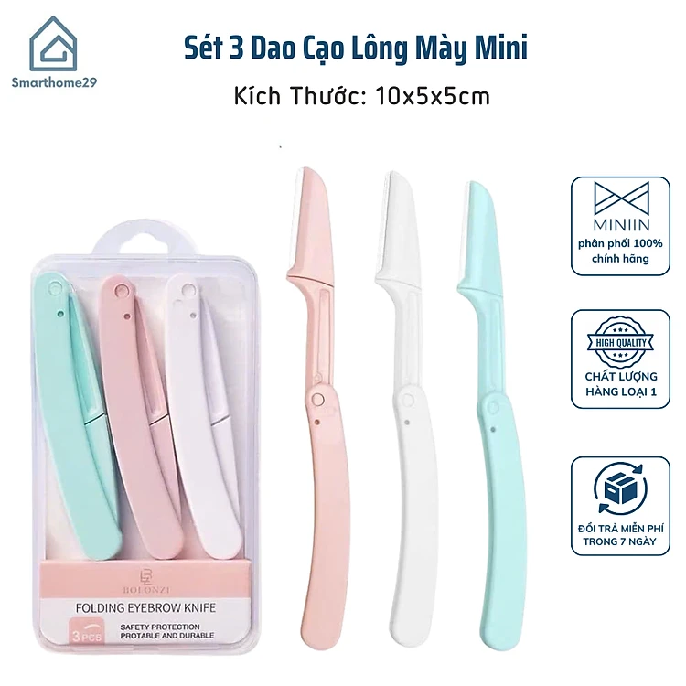 Sét 3 Dao Cạo Lông Mày Mini Tiện Dụng Kèm Hộp (Màu Ngẫu Nhiên) - HÀNG CHÍNH HÃNG MINIIN