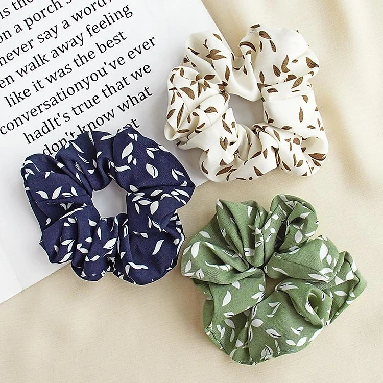 Sét 3 dây buộc tóc họa tiết lá mầu khác nhau HD60