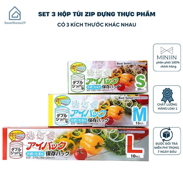 Set 3 HộpTúi Zip Đựng Thực Phẩm An Toàn Tiện Dụng Tái Sử Túi Đựng Thực Phẩm Dụng Phong Cách Nhật Bản - HÀNG CHÍNH HÃNG MINIIN