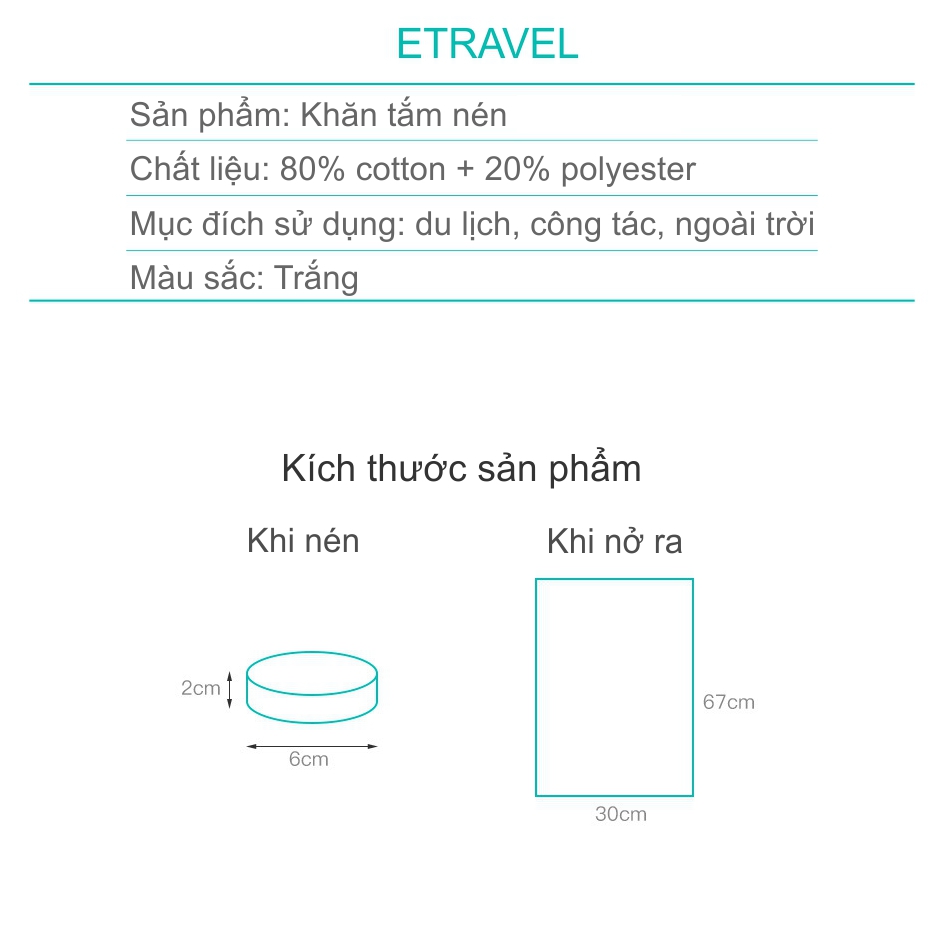 KHĂN TẮM NÉN ETRAVEL 30X67cm