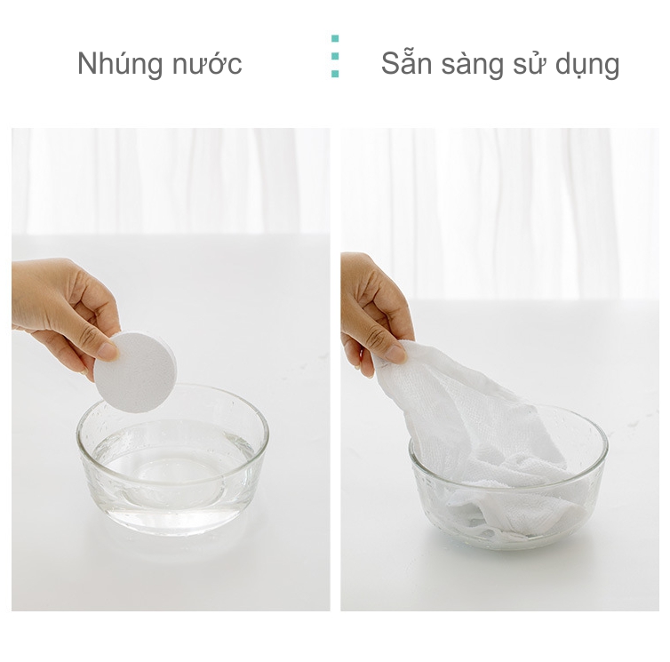 - Cách sử dụng đơn giản: mở bao bì bên ngoài, cho khăn vào nước khăn sẽ nở ra và sẵn sàng để sử dụng, dùng 1 lần.